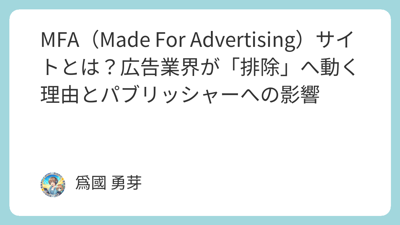 - サプライチェーンの不透明さ: MFAはアドネットワークの隙間を縫って配信されることが多く、広告費の不当な搾取として問題視されています。