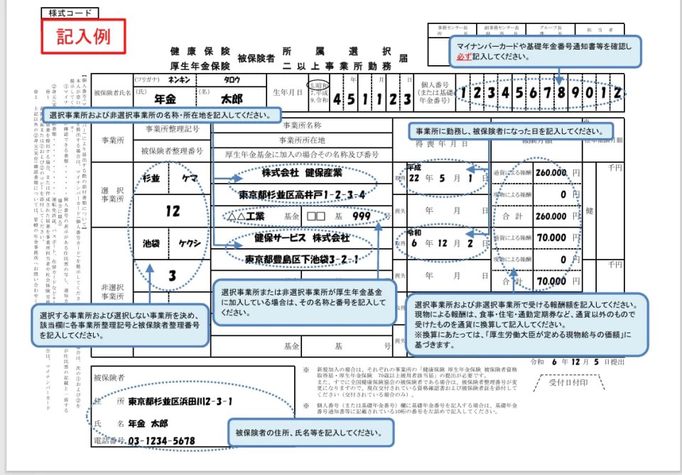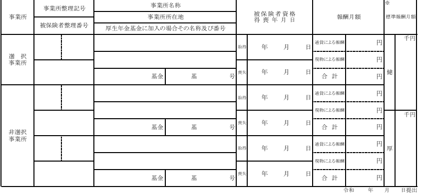 上図が二以上「健康保険・厚生年金保険 被保険者所属選択/二以上事業所勤務届」