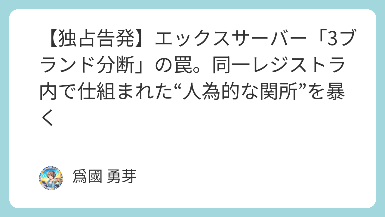 【独占告発】エックスサーバー「3ブランド分断」の罠。同一レジストラ内で仕組まれた“人為的な関所”を暴く